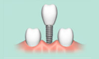 インプラント治療とは、歯の抜けたところにインプラント(人工歯根)を埋め込み、人工の歯をその上に取り付ける治療法です。